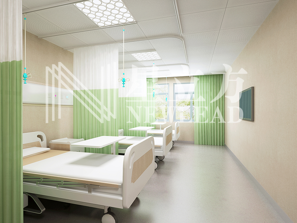 2、組合龍骨和輸液軌道以及隔簾軌道重合在一起,改變了傳統吊頂龍骨與軌道交叉交錯的情況,吊頂變得整齊劃一,不再凌亂。