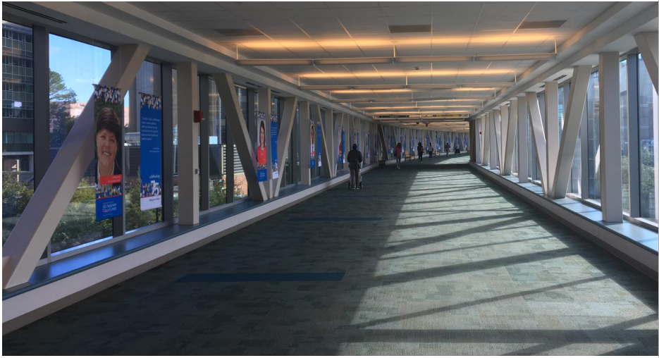 安德森癌癥中心連廊上貼滿了以醫護人員的照片和格言為內容的海報