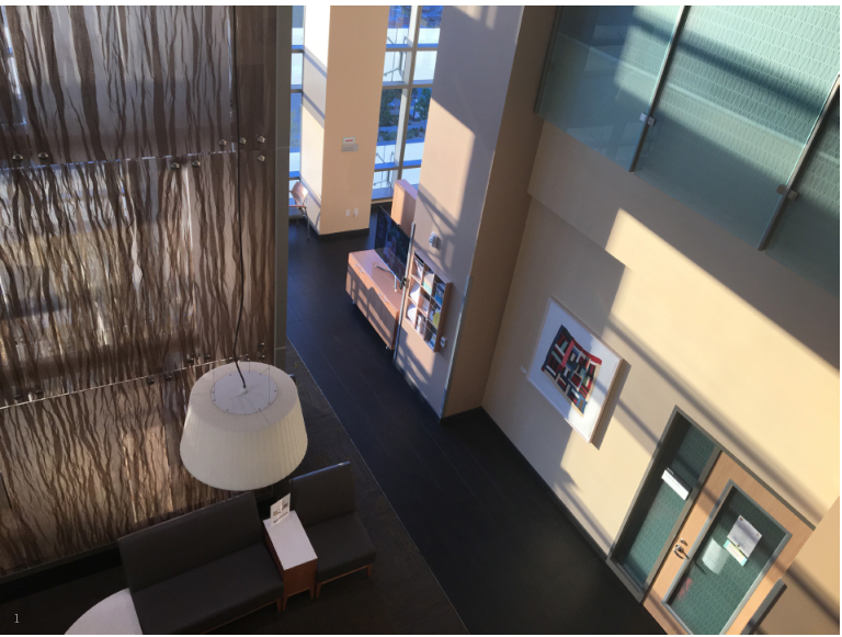 加州大學舊金山分校醫療中心,候診區由鬧到靜依次布置,由玻璃屏風分隔