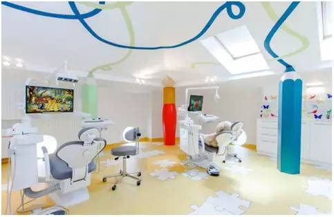 ③診療室則適宜用藍色等使人感到平靜的顏色作為背景色調,讓患兒沉靜下來,消除緊張感;同時適當用黃色、粉色等暖色調來裝飾,起到輔助治療的作用。