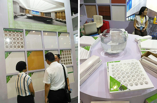 現場星立方負離子生態硅晶板、醫院集成吊頂等新型特色產品進入大眾視野,“星立方吊頂,不耗電的空氣凈化器”更是引得好多參觀者的好奇心,通過專業研發人員的講解說明,都紛紛點頭稱贊與認可。