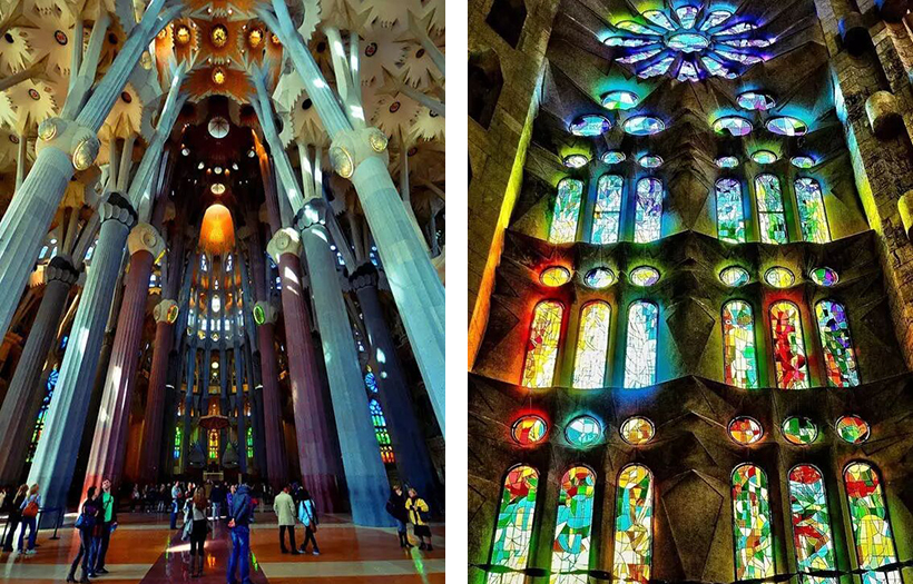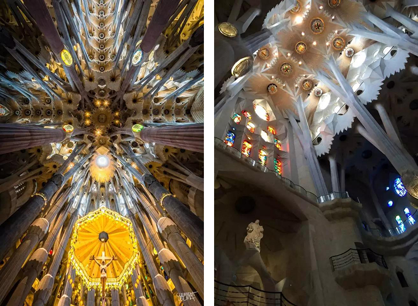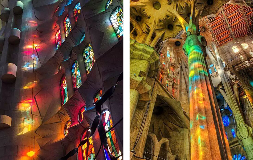 此外,高迪還巧妙地利用了光效來(lái)增強(qiáng)教堂的感染力。奇幻多變的光影效果搭配鬼斧神工般的創(chuàng)作,已經(jīng)完全突破了傳統(tǒng)的宗教建筑設(shè)計(jì)規(guī)范。