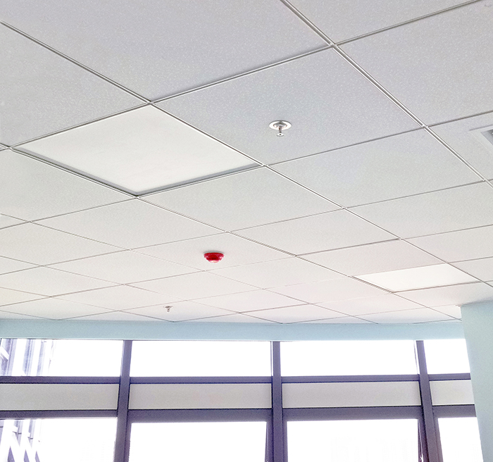 辦公科室吊頂采用星立方高晶吊頂方板系列,普通的規格簡單的造型也讓整個診室顯得干凈利落,給醫護人員及患者一份安全舒適感。