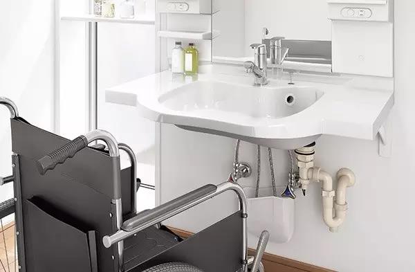盥洗區:應保證老人能坐姿操作,并有適宜的臺面和充足的儲藏空間。
