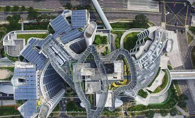 將大型公共建筑融入到密集的城市環(huán)境,黃庭芳醫(yī)院設計包括一個社區(qū)公園和浮動的綠色屋頂臺階,該臺階連接兩條現(xiàn)有的綠色林蔭大道,延續(xù)現(xiàn)有的城市林蔭大道。因為在綠色設計上以人為本的匠心獨運與優(yōu)化,如采光與通風的被動化設計、雨水回收、新生水回用、光電板再生能源等,新加坡建設局特此為黃廷芳綜合醫(yī)院與裕廊社區(qū)醫(yī)院頒發(fā)了綠標白金建筑獎。