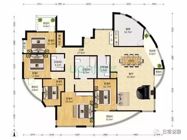 五室兩廳一廚三衛六陽臺,東南西北全通透。霸氣外露!