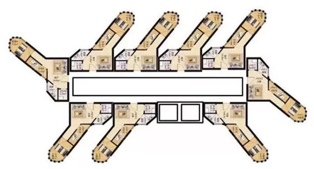 這款戶型可以說是非常屌了,其實建筑設計師和家裝設計師都是戴著枷鎖在跳舞,要妥協各種因素的影響,盡可能將空間利用起來。也有可能奇葩戶型是因為遇到要求奇特的開發商,在方案修改多次以后,設計師的突發奇想。”建筑師不容易,家裝設計師來補救,奇葩的戶型,也有可以改造的空間,將空間依照獨有的奇葩點改造,或許就能成就意想不到的好效果。