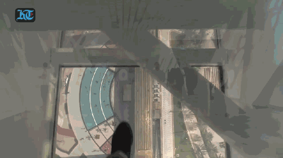 除了天橋,上下運輸游客的全景玻璃電梯,同樣也是個觀景的好地方。