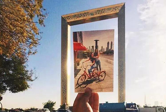 通過“畫框”連接兩座豎塔的100米空中長廊,參觀者可以拍攝迪拜的全景照片,