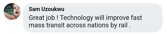Sam Uzoukwu:真棒!高科技將通過鐵路實現國家間的高速軌道運輸。