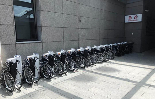 協和醫院15臺共享輪椅,采用固定鎖樁方式,共享輪椅鎖樁內置高科技芯片,用戶通過掃碼10秒內即可完成操作,前兩小時對用戶免費開放,基本可以滿足院內一半患者的使用需求,對于長需用戶,24小時內最高30元。