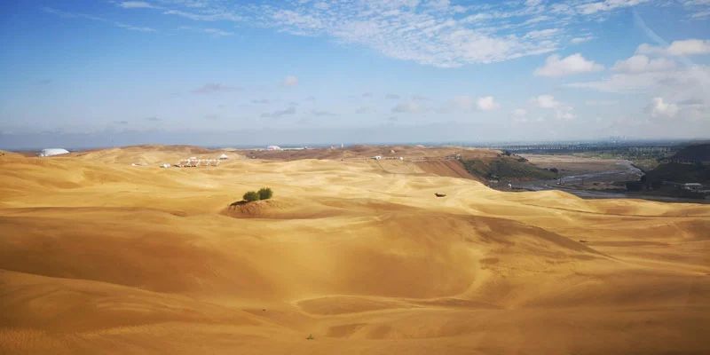 庫布其沙漠,位于鄂爾多斯臺地北部邊緣、黃河南岸,海拔高度1000~1400米,地勢由北向南呈階梯狀抬升,主要分布在鄂爾多斯市杭錦旗、達拉特旗,東西長365公里,南北寬約40公里,總面積1.86萬平方公里,是我國第七大沙漠。經過近30年的努力,庫布其沙漠治理面積達6000多平方公里,綠化面積達3200多平方公里,成為世界上唯一被整體治理的沙漠。
