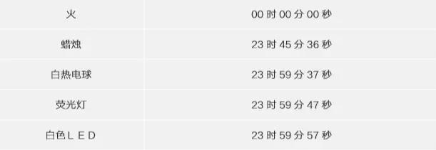 (用 24 小時(shí)來(lái)比喻各種光源產(chǎn)生的時(shí)間(注 :該數(shù)據(jù)來(lái)源于日本 LED 推進(jìn)委員會(huì)網(wǎng)站))