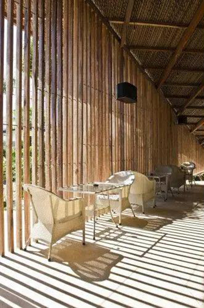 而不同的窗材料能夠?qū)⑹彝夤饩€過(guò)濾成不同的形狀和色彩,木材、竹藤豐富的色澤和紋理帶來(lái)了獨(dú)特的質(zhì)感與光線的相互輝映。