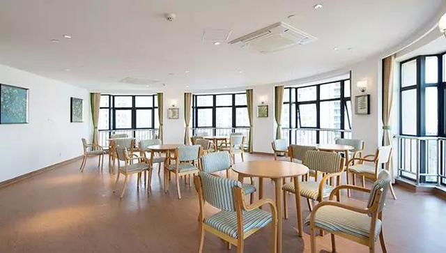 這個(gè)功能空間中應(yīng)該設(shè)計(jì)在建筑外圍,既保證有舒適的采光,又需要外圍配合有景觀樹(shù)蔭遮擋,不至于光線過(guò)于強(qiáng)烈刺眼,可以讓老人們長(zhǎng)時(shí)間在這里休憩停留。