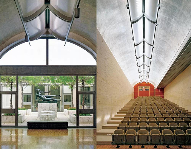 一組優美的拱形桶狀建筑相連形成博物館的主體形態,連綿起伏的圓形拱形屋頂散發著古典主義氣息,這正是康獨特的個人風格。