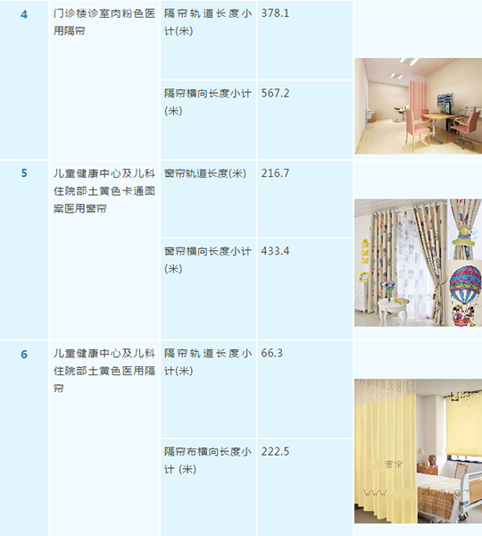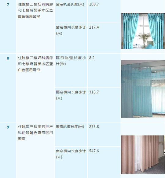 窗簾隔簾及導軌采購安裝是醫院新建項目開辦的一項重要內容,包括各式窗簾、紗窗、隔簾和窗簾隔簾導軌、輸液導軌等,品種樣式繁多,使用功能各異,還要考慮滿足消防、安全、環保、院感控制和空間環境色彩搭配等多方面的特殊需求。