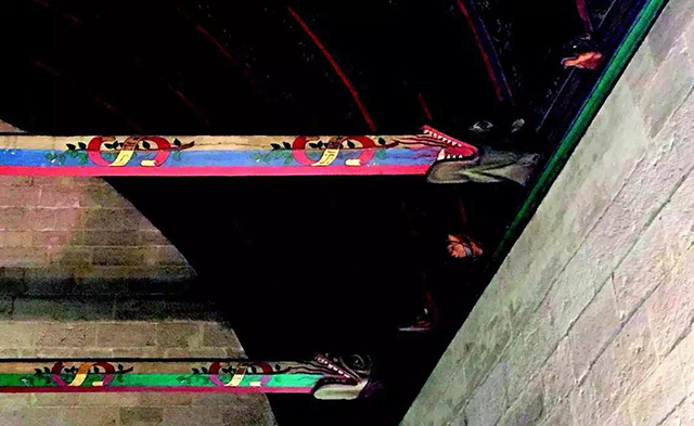 ▲大梁兩端猛獸咬合的雕刻象征著驅疾祛病