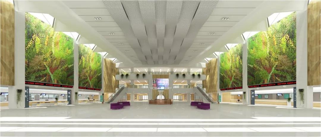 通道天花用靜態(tài)景觀照明,兩側采用玻璃幕墻,充分利用自然光