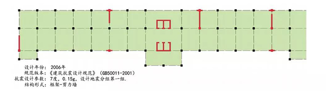 我國抗震規范要求的不斷提高,可以從我們歷年來設計過的建筑結構布置中直觀地感受出來 :同一城市,建筑使用功能相同,層數相近,2006 年建設的某醫院住院樓采用框架 - 剪力墻結構,剪力墻厚 350 毫米,在建筑平面“長寬比”較大(長寬比越大越不利于結構抗震)的情況下,墻體數量較少便可實現 ;