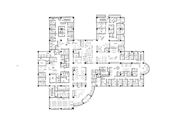 在萬柳院區的設計中,自由延展的平面布局不僅打破了醫院建筑水平枝狀的結構,通過自由分枝來解決不同功能組合,因為自由空間構成對于多層庭院式醫院來說更加富有趣味性,保證醫院多個獨立單元的需求,而且打破了常規醫院門診-醫技-住院的固定序列,創造出多個尺度宜人的庭院空間。在規劃形態上遵循“核心集中,適度分散”的原則,內部空間為公共-半公共-私密式的設計,實現了醫院運營者的高端服務理念,也體現了我們建筑師對于建筑品質與細節的追求。