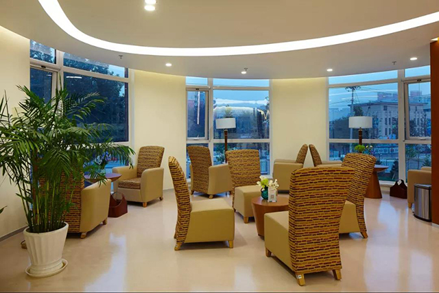 婦兒醫院病房設計具有一定的特殊性,健康人群對房間的色彩、質感、裝飾物、藝術品的要求更高。萬柳院區全部采用了單人病房模式,病房根據家庭居室風格進行設計,房間色調和諧、質感柔軟,有利于孕產和提升治療效果,設置了陪護床和沙發床,家人可以陪同居住其中,并配置有電視、電話、微波爐、衛生間和小型廚房。