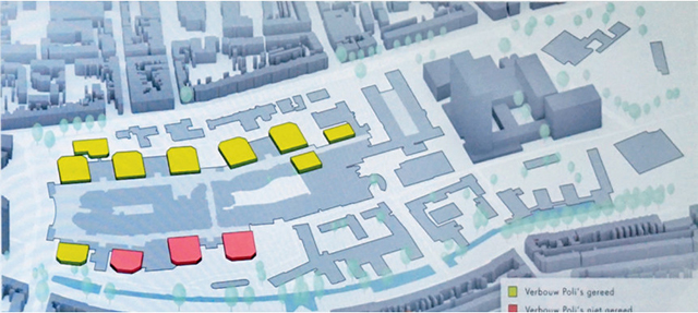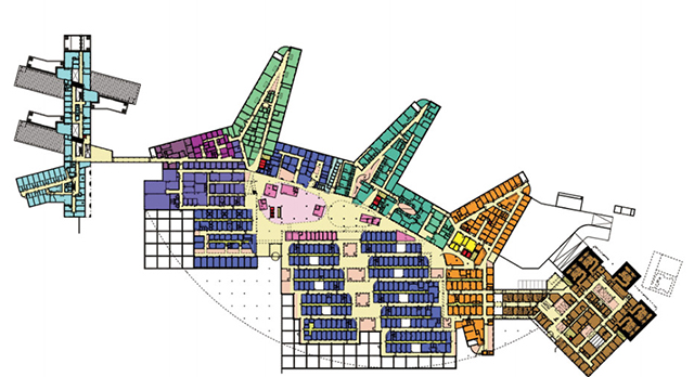 △ 格羅寧根大學醫療中心門診改造示意圖,綠色部分是已經重建完成的門診科室,紅色部分是等待重建的門診科室