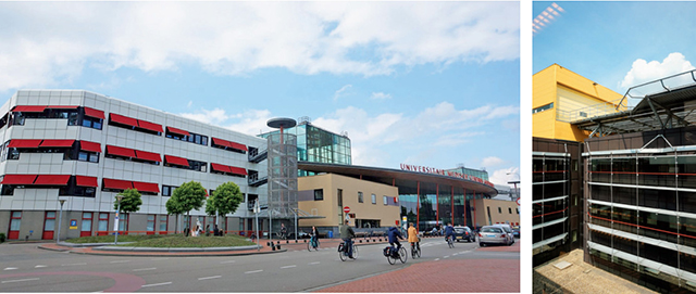 如格羅寧根大學醫療中心病房樓外立面采用了可調節的遮陽設施,內庭院則采用了固定橫向遮陽;迪溫特綜合醫院主街則采用光伏發電板遮陽,減少了 20% 的電力消耗。