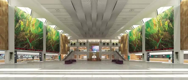 (通道天花用靜態景觀照明,兩側采用玻璃幕墻,充分利用自然光)