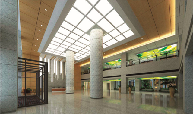 公共區域可采用LED平板燈,采用LED燈珠作為發光光源,通過導光板將燈光均勻分散于發光面, 具有亮度高、照明均勻、光線柔和、無交流頻閃等特點。此外,LED燈顯色性好, 日光的顯色指數是100,LED光源的顯色指數可達95,顯色性高的光源對顏色的表現較好, 所看到的顏色接近自然原色。