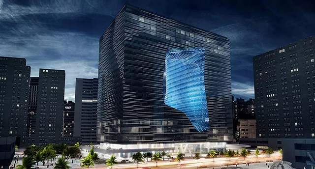 有了這一技術,Odico 的定制鋁板才可以呈現 Zaha Hadid 在迪拜的 Opus 大樓,那壯觀自由的曲面外墻 ▽
