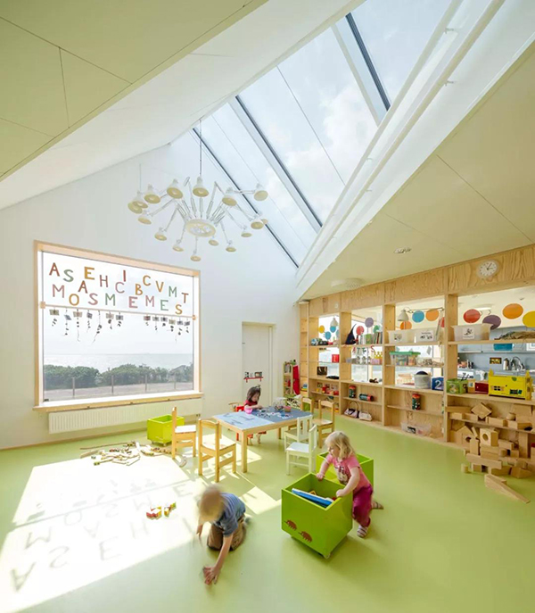 大海蘊(yùn)藏著無限的傳說和故事,是人類想象力的發(fā)源地。所以瑞典在建立這所幼兒園時(shí),充分從大海中汲取了靈感,可以說,整座建筑物,仿佛直接從海岸線拔起,巨大的屋頂完美的融合在天海一色的風(fēng)景中。整個(gè)幼兒園,就是大海的一個(gè)驛站。