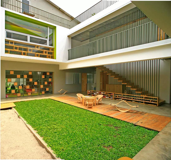 這所位于泰國的幼兒園,可以說是孩子終極夢(mèng)想中的幼兒園。這是一個(gè)巨大的書屋,里面囊括了圖書館,廚房,美術(shù)室,音樂室,陽臺(tái),以及一架有趣的滑滑梯。孩子們?cè)谶@里生活,無時(shí)無刻不在感受著大自然的同時(shí),領(lǐng)略著童年集體生活的樂趣。