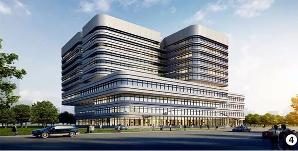 因地制宜,強(qiáng)化醫(yī)院整體形象,契合平面布局的需求,病房樓流暢的曲線兼顧周?chē)鞘懈傻赖牧⒚嫘蜗螅哂羞h(yuǎn)距離標(biāo)識(shí)作用。