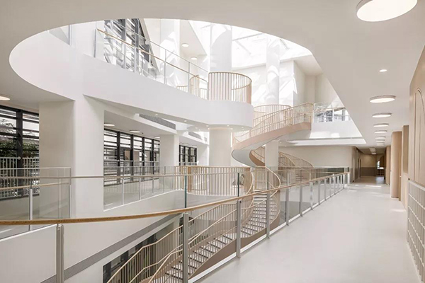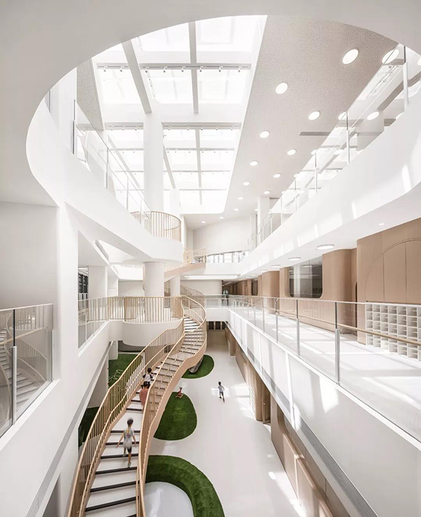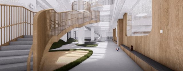 全園以淺木色為整體基調,大面積的超白透明夾膠安全玻璃創造出純凈、公平、寧靜的空間環境。