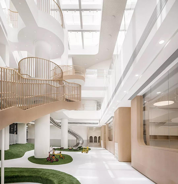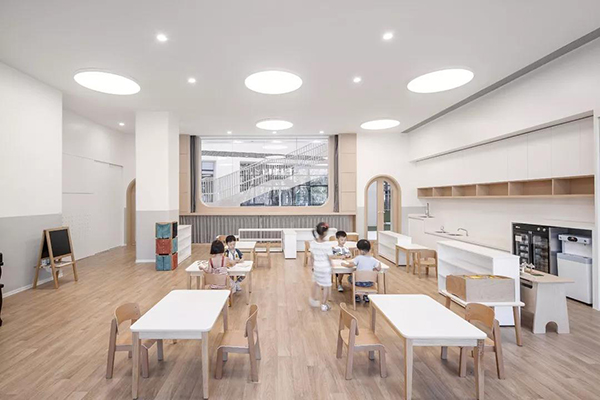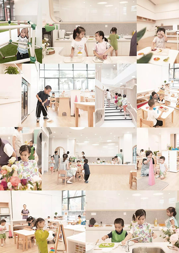 幼兒園設計充分考慮了1.5-6歲兒童在幼兒園生活與成長的一切細節,設計過程結合專業的蒙特梭利理念和知識,呈現了教科書般的蒙氏幼兒園樣板。
