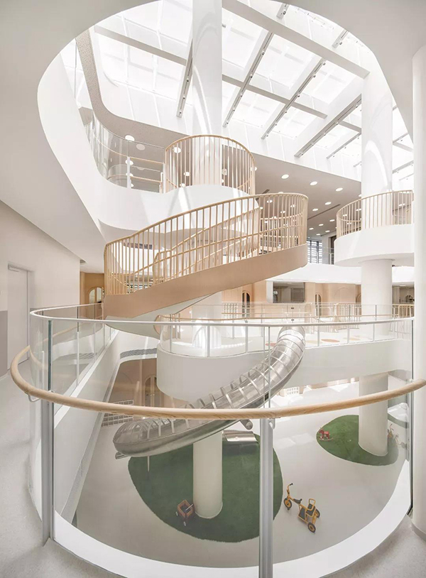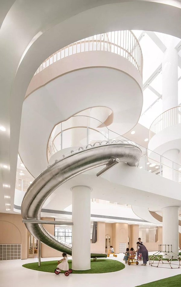 從入口的旋轉樓梯開始,整個幼兒園被一條滿載歡聲笑語的自由路徑串聯。