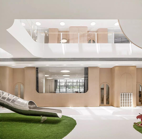 全園所有空間均采用了圓弧形倒角設計最大程度避免了各類尖角所存在的安全隱患,孩子們可以恣意奔跑,不用擔心磕碰。
