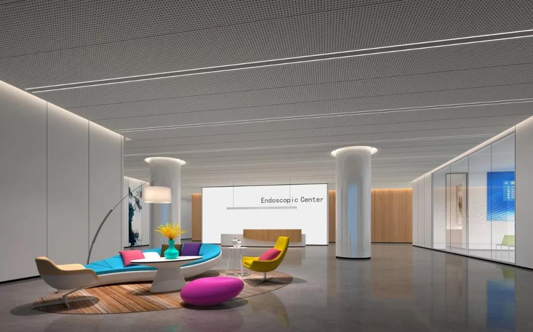 在確定了設計目標之后,接下來要做的就是通過設計來找到實現目標的路徑,并且用設計語言將路徑表達出來,即通過所有設計細節的組合來達到預期的效果。這是對設計團隊的真正考驗,任何一個細節如果處理不好,都會影響使用效果和用戶體驗。該項目的定位較為“高端”,那么什么是高端,如何體現高端呢?這既取決于設計師對“高端”的理解,又考驗著其對細節表現手法的把握。孫亞明認為,高端并不是簡單地用資金堆積起來的。有的項目為了體現醫院建筑和空間的檔次,大量使用各種高檔材料,如進口大理石、波斯地毯、水景吊燈等等,在孫亞明看來,這并不是“高端”,而是“奢華”。在諾萊國際醫學中心裝修項目中,孫亞明對高端的定義是:給人一種舒適的體驗。如何做到呢?具體來說,首先,整個空間內聞不到油漆味以及其他由各種裝飾材料散發出來的刺鼻氣味;其次,放眼整個醫院建筑的每個角落,沒有生硬、明顯的裝修痕跡,環境中所有的一切都仿佛自然生長起來的;第三,環境中的材質不會讓人的皮膚產生排斥,使人愿意與環境親近、互動。此外,醫院中要有高科技元素,高端科技及裝備的應用將為整個醫院賦能,提高運行效率,并給人們一種獨特的體驗。如果能夠在為人們提供舒適體驗的基礎上,讓人們同時對環境充滿期待,這則是更高的目標和追求。