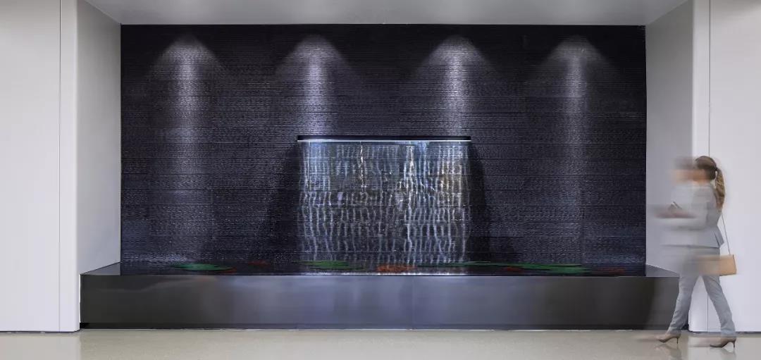 在體現醫院文化方面,緊密圍繞泰山、泉水、竹林這些文化符號,并且所有藝術品都與生命醫學相關。在突出空間與自然的關系方面,孫亞明大膽挑戰,采用6m×6m的水流幕墻(模仿泰山的硯石)、以雕塑為核心的小水景,將水引入室內,其中一處漩渦式水景更是難得一見,無論從設計還是施工都充滿挑戰;采用借景、退讓等多種手法,讓空間富有變化。對于水景的維護,有些醫院管理者或許覺得比較麻煩,而孫亞明則認為,不容易維護的東西,可能恰恰是醫院建筑空間需要的。