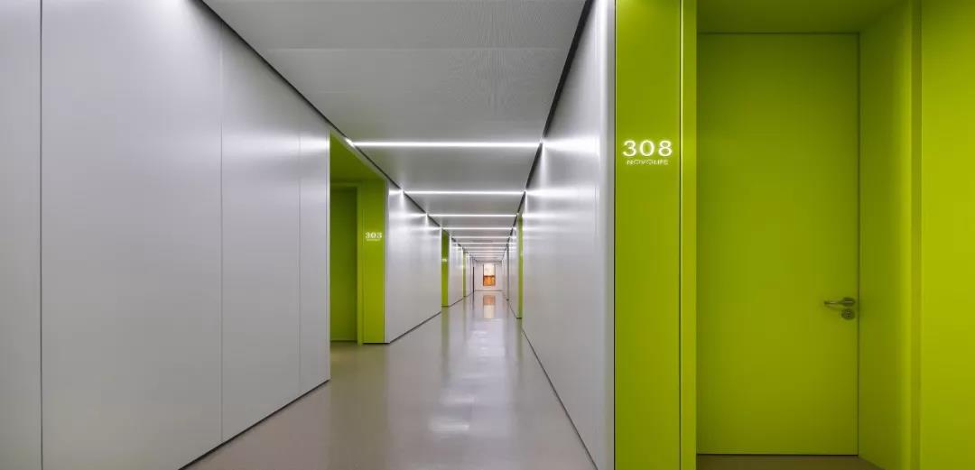 在用色方面,孫亞明秉持的原則是:不采用傳統認知的色彩。他利用大面積的、形成鮮明對比的顏色來區分不同功能區,幫助人們快速地到達目的地;顏色的配比遵從黃金分割率,整個環境的色彩搭配非常協調;顛覆了醫療機構內的傳統用色慣性,大面積地使用了綠色和黃色,使得空間給人耳目一新、眼前一亮的感覺。雖然在項目實現之前,很多人都對這種大膽用色的效果充滿忐忑,但是項目完工后,真實效果大大出乎意料。不得不說,這是一次魄力的體現,不僅包括孫亞明敢于突破的魄力,也包括諾萊國際醫學中心項目管理團隊敢于相信專業設計師、勇于嘗試的魄力。而魄力來自信心,信心源于實力,實力則基于積累。