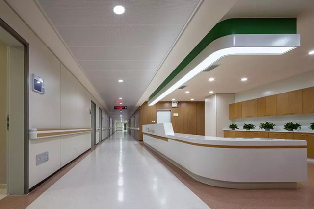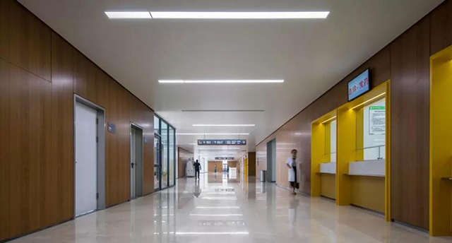 從室外到室內的主要交通流線上,均考慮了坡道、醫療扶手等無障礙設施。醫院各個區域的照明燈具,均采用防眩光燈具,柔和的燈光避免了對人的視覺刺激。醫院功能復雜,標識系統進行了系統的規劃設計,簡潔明晰、銜接流暢、不留死角,提高了就醫效率。