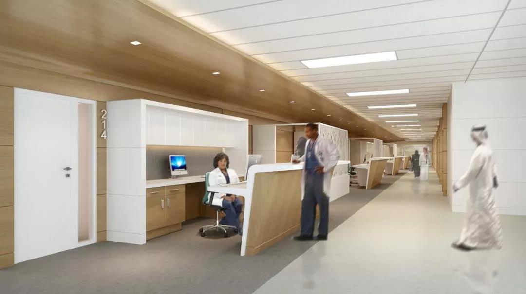 拉希德國際醫學城將引入尖端的醫學技術來支持其各項服務,并將各種設備、程序和信息在一個核心系統中整合,創造一個以患者為中心的環境,患者能夠自主控制燈光、溫度以及其他環境元素,這將大大改善患者的就醫體驗并且使患者樂于將該醫院推薦給其他人。