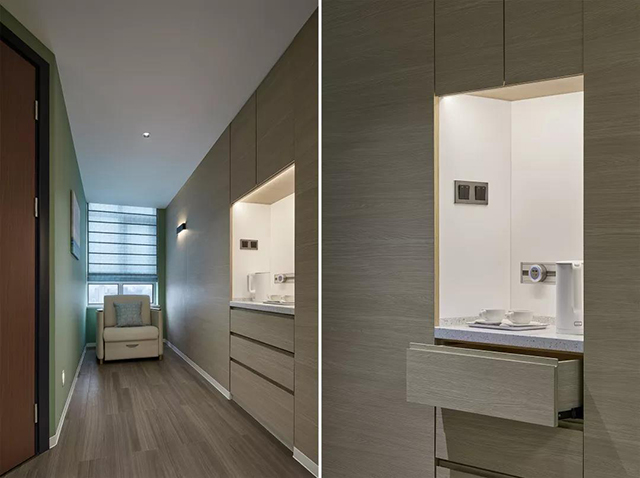 在病房照顧患者的家屬也是一個不容忽視的群體,他們的心理,生理承受的痛苦與壓力也非常大,且考慮到不能給患者帶來影響,他們的負面情緒往往得不到釋放,反而容易成為醫患矛盾的觸發點。因此,在設計時充分考慮患者家屬休息的空間以及家屬推輪椅行動過程中的便捷性,都是建立良好患者體驗的一部分。