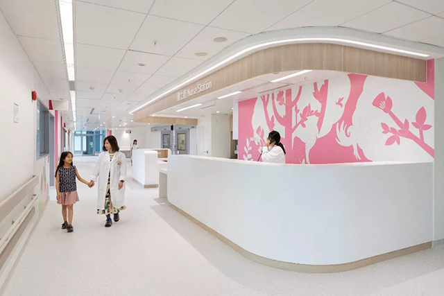 在病房的設(shè)計上,我們除了考慮床位數(shù)量搭配,包括單人房、雙人房、4人房及6人房的組合,為不同病癥的兒童提供針對性的治療環(huán)境。在病房內(nèi)部設(shè)計上,延續(xù)各層主題動物的設(shè)計風格,將主題動物帶入病房中,為兒童演繹各類故事。醫(yī)院在4樓同時設(shè)計有20個過夜房位,為更多病患家屬提供不同過夜選擇,減少家屬在陪護過程中產(chǎn)生的壓力。