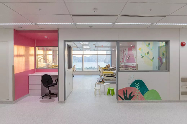 香港兒童醫(yī)院共設(shè)有14間手術(shù)室,包括1間混合型心臟導管復合手術(shù)室,主要集中在A座三層,B座三層設(shè)有小兒科加護病房及心臟病房,兩者通過一條廊橋連接。