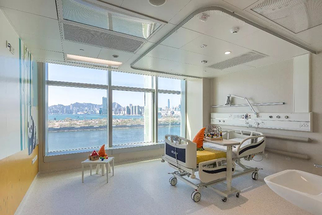 香港兒童醫(yī)院位于香港啟德發(fā)展區(qū)南區(qū),占地21684平方米,建筑面積加上地下室近20萬平方米,由兩座以3條連接橋貫穿各11層高的大樓、中央庭院、兩層地下室和其他相關(guān)設(shè)施組成,共提供468張床位。工程從2013年8月開工,在2017年9月竣工,并于2018年12月開始分階段投入運作,項目政府整體投資130億港元。本文將著重分析香港兒童醫(yī)院的病房區(qū)、手術(shù)室、中心消毒室、藥劑室、放射科這五大核心區(qū)域的規(guī)劃設(shè)計。