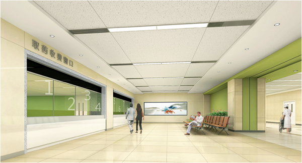 醫(yī)院空間的色彩設(shè)計(jì)在提升醫(yī)院的環(huán)境品質(zhì)、促進(jìn)患者康復(fù)方面有著不可替代的作用,然而這個(gè)問題在實(shí)踐中卻是非常難以把握的。醫(yī)院的色彩設(shè)計(jì)應(yīng)該在遵循美學(xué)原則的基礎(chǔ)上,更多地強(qiáng)調(diào)其自身的功能性和實(shí)用性。醫(yī)院環(huán)境建設(shè)當(dāng)中,每一處色彩的使用,必須要體現(xiàn)一定的功能和作用,它的存在主要是為了解決空間需求,并非單純?yōu)榱藠蕵贰⒒钴S氣氛。例如:青海省第五人民醫(yī)院將暖綠色點(diǎn)綴到不同的室內(nèi)空間中,使得醫(yī)院的整體視覺效果自然清新,讓人身心感覺非常舒服。