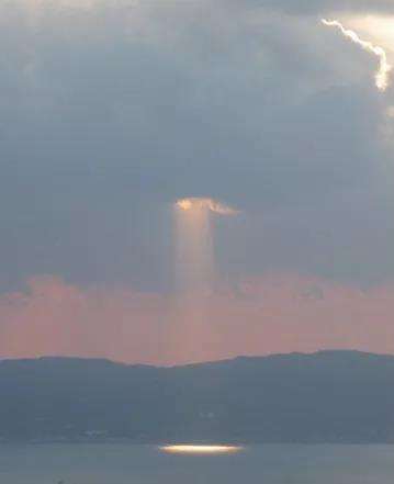 這里有一張照片,描繪的是光芒穿透云層注入大海的景色。這一幕如此動(dòng)人,是因?yàn)楣馐诿靼档膶?duì)比中顯現(xiàn)出其存在。