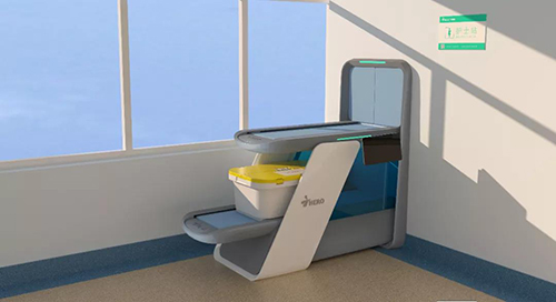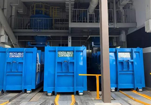 “氣力式垃圾被服分類收集系統”利用中央收集站內的風機使管道內產生負壓,打開垃圾排放閥或污衣排放閥,通過垃圾管道或污衣管道,將垃圾或污衣運輸至垃圾集裝箱或污衣收集器內。